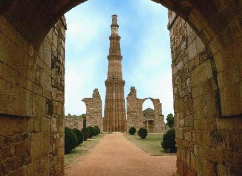4* Complejo de Qutb Minar(Delhi): En el emplazamiento de la primera Delhi musulmana, fundada en el s. XIII por el General Qutb ud-Din Aibak, se eleva la Qutb Minar, torre-minarete que, desde lo alto de sus 73m, domina las demás estructuras y monumentos del parque. La Mezquita Quwwat ul-Islam, la más antigua de la India (1193) mezcla el estilo islámico y el indio (está construida con materiales reutilizados de templos jainos e hindús). Al oeste de la mezquita, la tumba de Iltutmish (1235), sucesor de Qutb ud-Din, es el primer sepulcro monumental erigido en la India.